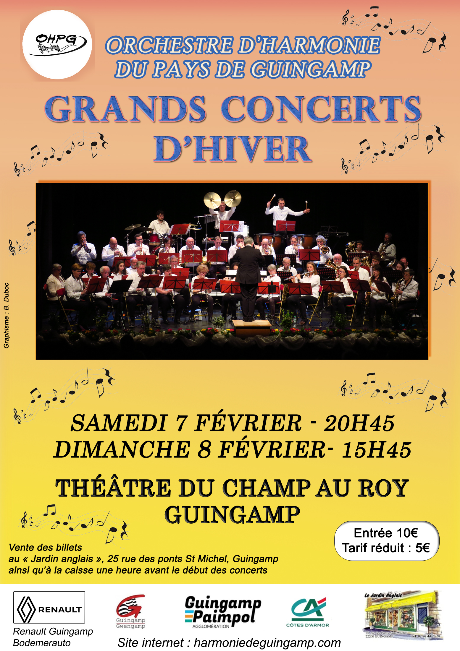 L’OHPG est une association, créée en 1997 à Guingamp (Côtes d’Armor – 22) qui dispense des cours de clarinette, saxophone, trompette, tuba, cor et trombone en vue de la pratique de la musique en orchestre.