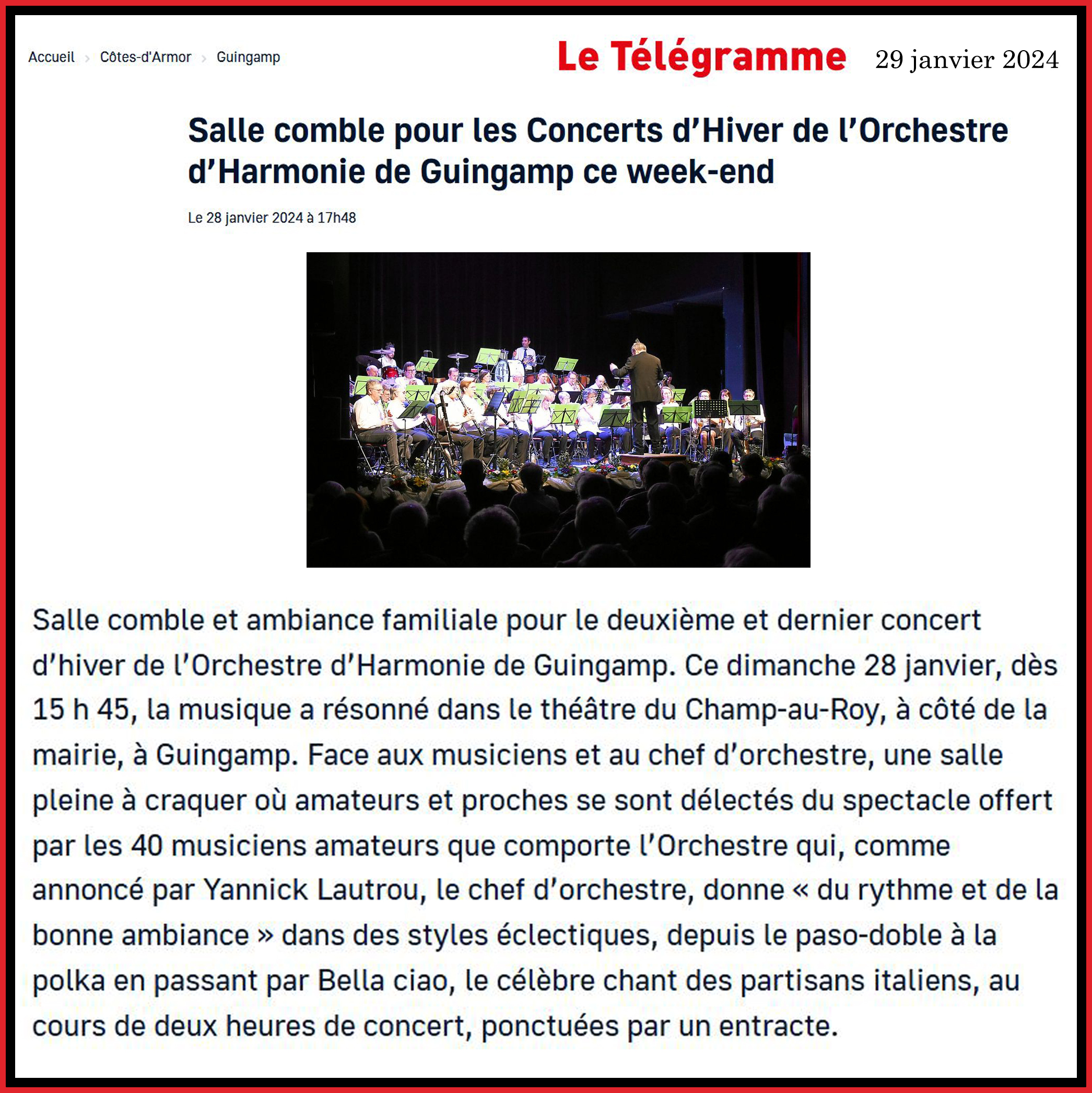 Catégories Lu dans la presse Le Télégramme – 29/01/2024 Post author Par ponymusic47 Post date 19 mars 2024 Voir l’article en ligne sommaire Cliquez pour partager sur Facebook(ouvre dans une nouvelle fenêtre) Facebook Cliquer pour partager sur X(ouvre dans une nouvelle fenêtre) X Similaire ← Le Télégramme – 06/03/2023
